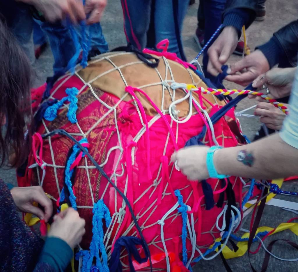 A partir de ese momento, y utilizando el khipu como objeto simbólico, Nudo pasa a ser una investigación-creación sobre como utilizando el cuerpo en movimiento se pueden abordar los conflictos, tanto individuales como colectivos (y el identitario en particular), no para poder solucionarlos sino para evidenciarlos a través de los cuerpos. Nudo también es un intento de ver las tradiciones como algo dinámico desde la que aún se puede construir nuevas estéticas. De esta manera, en el espectáculo hay una amalgama de referencias culturales no solo ecuatorianas o ibéricas, sino generadas a partir de las jornadas de trabajo e investigación que han llevado las creadoras y creadores.