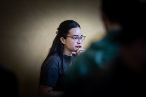 Esta entrada no sería lo mismo sin poder ilustrarla con las imágenes que a la vez nos sirven de archivo, a medida que vamos haciendo. Por eso gracias también a Jonathan Rodríguez por todas estas imágenes. Una labor que como la realizada por las voluntarias de las Jornadas, marcan la diferencia. Como en todo grupo humano, cambiamos de roles constantemente y a veces estar detrás de las cámaras a veces estar tras la cámara deja a una fuera de plano. Pero sin ellas el plano es imposible. Por eso esta foto de Tamara Brito de Heer, a cargo del registro en vídeo de las Jornadas, del mismo modo que en los procesos creativos y con las piezas, como una puzzleatípica más.